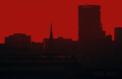 Totally red city scape of Rotunda from Highgate