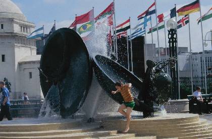 Child baithing in statue fountain in Centenary Sq circa 1998