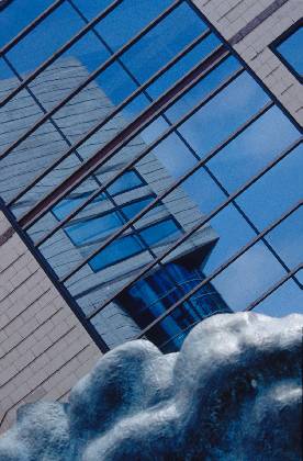 Abstract viewpoint on glass walls and reflections in ICC building