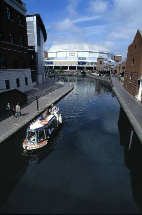 Long view down canal from Brindley Place bridge to NIA in distance SC000096