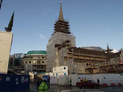 Description: St Martins clad in scaffold during cleaning and Bullring con