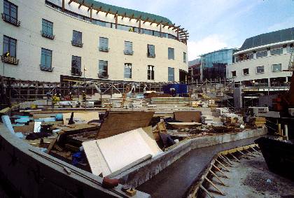 Description: St Martins Square during Bullring construction, marble laying