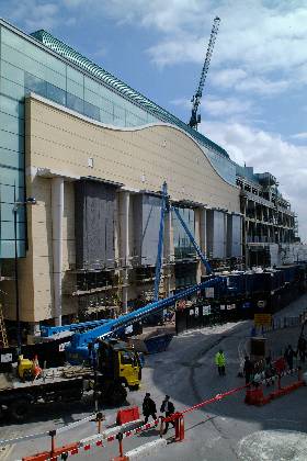 Debenhams south façade during Bullring construction work