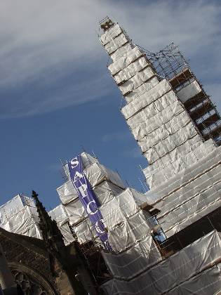 St Martins Church with spire shrouded during cleaning
