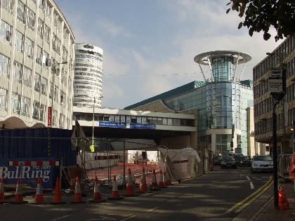 Bullring bridge, Debenhams & Rotunda from Small Brook Queensway w roadworks
