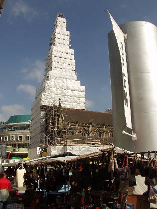 St Martins during cleaning & Bullring construction with Markets signage