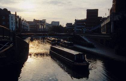 Description: Dusk view allong canal from bridge adjacent to Malt House pub